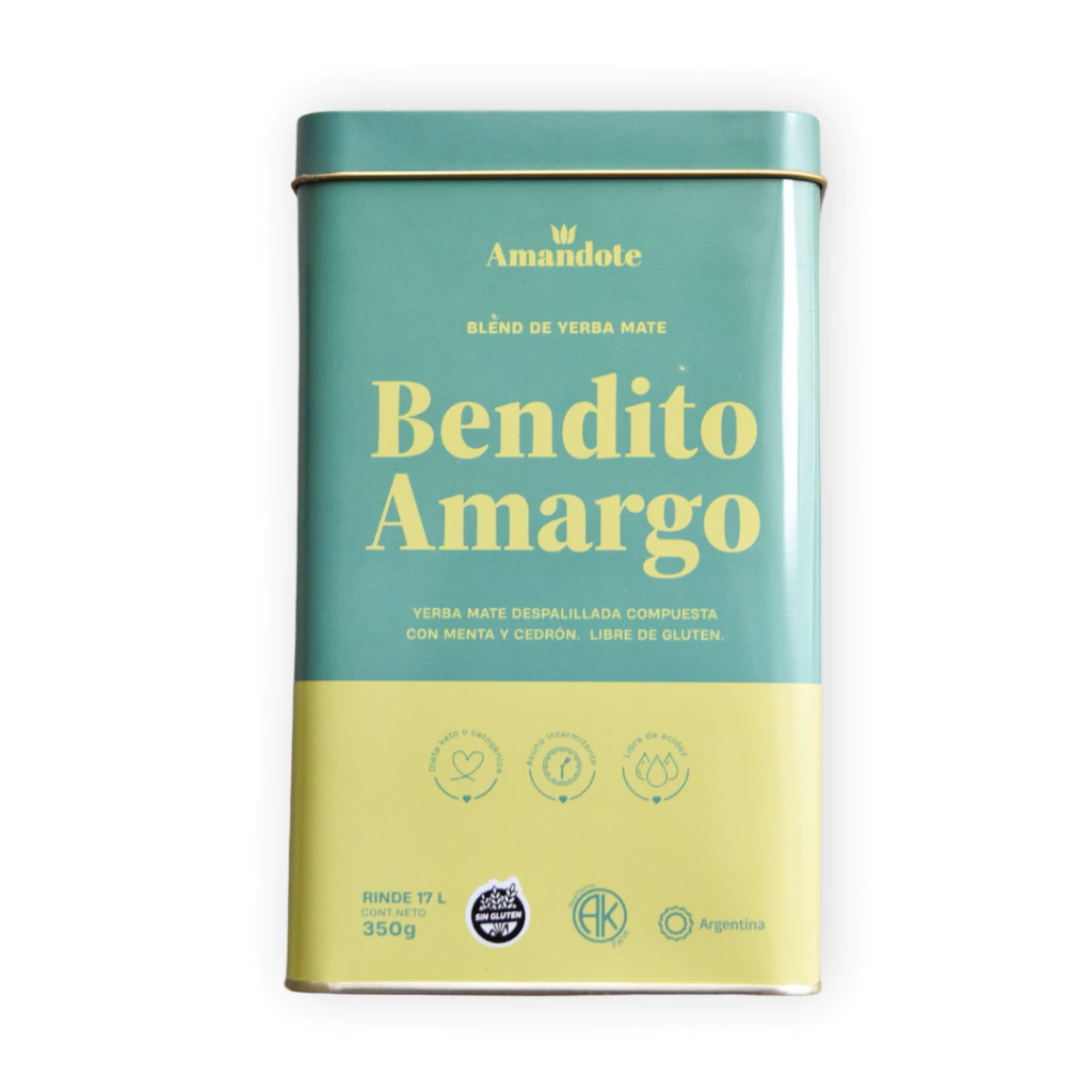 Lata Yerbera de Aluminio grabada con Blend Bendito Amargo (Yerba mate despalillada de corte grueso, Cedrón y Menta)
