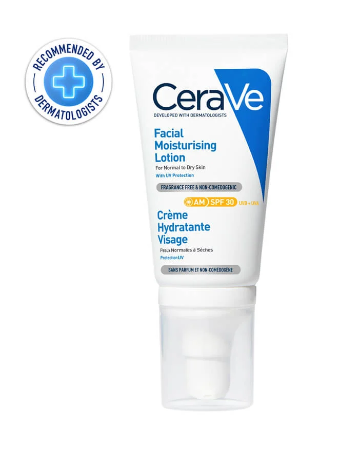 Una loción hidratante facial es una parte clave de cualquier rutina de cuidado de la piel por la mañana, y un hidratante con FPS de amplio espectro es fundamental para ayudar a proteger su piel de los dañinos rayos UVA y UVB. Para conseguir efectos hidratantes y restaurar la barrera de la piel, busque ingredientes como el ácido hialurónico, la niacinamida y las ceramidas, y una fórmula no comedogénica, como la de la Loción hidratante facial de día con protección FPS 30 CeraVe, que no obstruye los poros ni provoca brotes de acné. El Hidratante facial de día CeraVe es una solución multitarea para el cuidado de la piel por la mañana, ya que contiene tres ceramidas esenciales, ácido hialurónico hidratante y niacinamida calmante, además de nuestra tecnología patentada MVE Delivery Technology para proporcionar la hidratación necesaria durante todo el día. Ofreciendo protección solar de amplio espectro, nuestra loción hidratante con FPS 30 cuenta con la tecnología InVisibleZinc™ (óxido de zinc microfino) que se extiende fácil y uniformemente sin dejar un residuo calcáreo. Y como la Loción hidratante facial de día CeraVe no es comedogénica y no obstruye los poros, es ideal para todo tipo de piel.