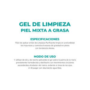 Elimina impurezas diarias, disminuye el exceso de sebo y ayuda a controlar el acné. Efecto refrescante. Ideal para aplicar bajo la ducha. Indicado para piel mixta a grasa.
