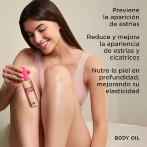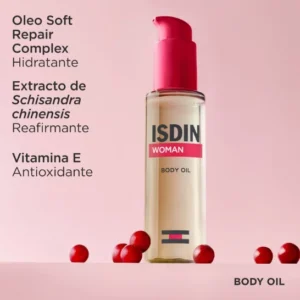 Nutre tu piel en profundidad con ISDIN Woman Body Oil. Es un aceite corporal antiestrías con 92% de ingredientes naturales. Su fórmula con aceites mediterráneos y Óleo Soft Repair Complex mejora la elasticidad, firmeza y apariencia de cicatrices. De rápida absorción, deja la piel nutrida, suave y uniforme.
