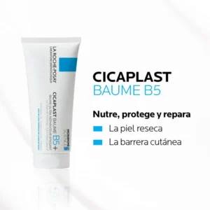 Cicaplast Baume B5 contiene agua termal de La Roche-Posay, Madecassoside (fomenta la renovacion celular), Cobre+zinc (antibacteriano),Manteca de karite (nutre y repara la barrera de la piel) y glicerina (hidratante).