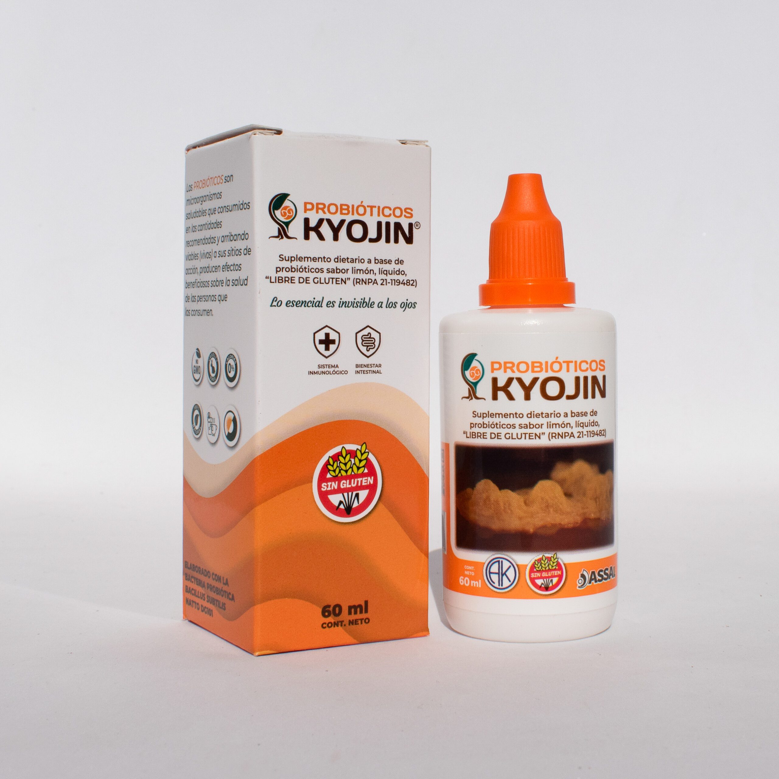 KYOJIN Tradicional es un suplemento dietario líquido a base de probióticos, formulado con unidades formadoras de colonias de Bacillus subtilis DG101 que cubren el 100% de la ingesta diaria recomendada. Su objetivo es contribuir al equilibrio de la microbiota intestinal, lo que favorece la digestión, mejora el tránsito intestinal, fortalece el sistema inmune y puede influir positivamente en el metabolismo y en la comunicación entre el intestino y el cerebro.