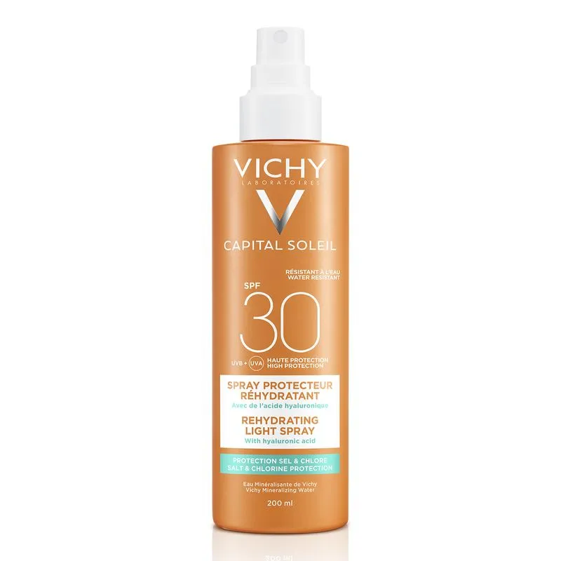 El primer spray protector solar de Vichy para aquellos que adoran el agua y son propensos a la deshidratación cutánea. Enriquecido con Ácido Hialurónico, este nuevo spray previene la deshidratación provocada por la sal y/o el cloro.